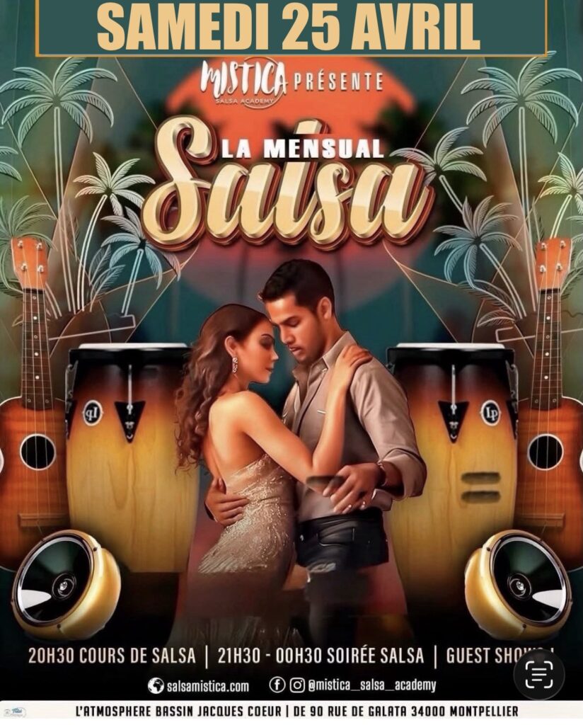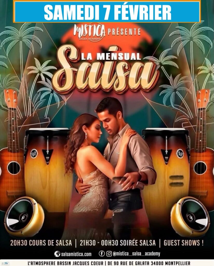 Notre école MISTICA Salsa Academy vous invite chaque mois lors de sa soirée « La Mensual Salsa » ! Un rendez-vous qui réunit la communauté Salsa de Montpellier et ses alentours.